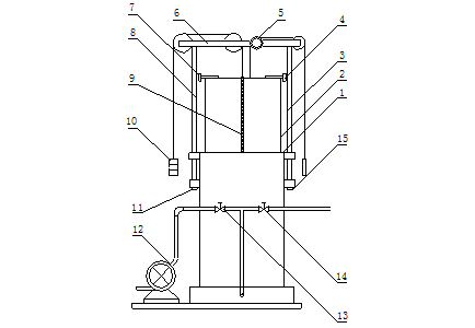4  先關閉進氣閥和排氣閥,向鐘罩外筒充灌密封液至1/3左右 ,密封液通常用白油等低粘度油